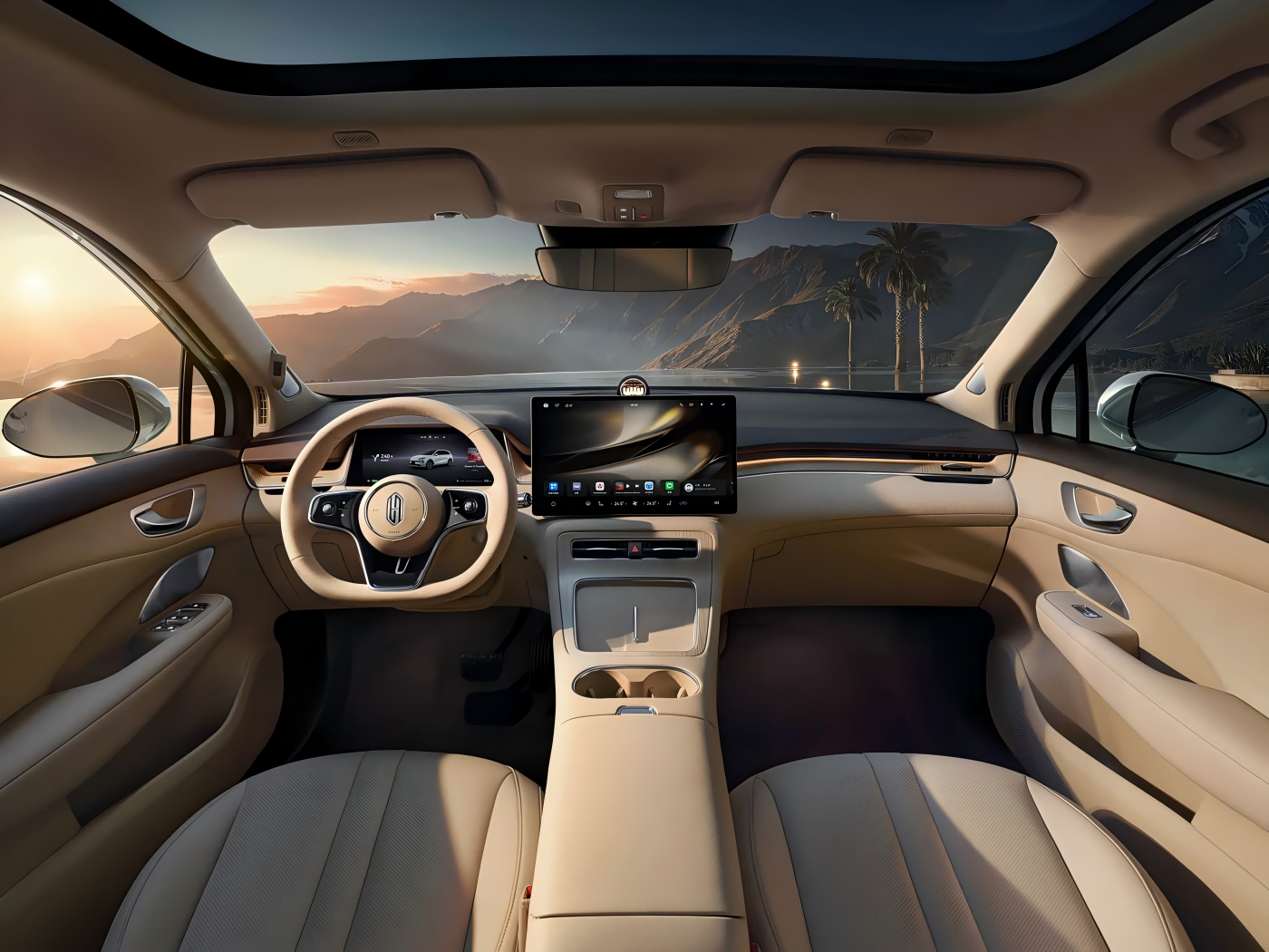 আনুষ্ঠানিকভাবে, শাওহুয়া এপ্রিকোট রঙের অভ্যন্তরের একটি অফিসিয়াল চিত্রও একই সাথে প্রকাশিত হয়েছিল। এটি একটি থ্রি-স্পোক মাল্টি-ফাংশন স্টিয়ারিং হুইল, হারমনি ইন্টেলিজেন্ট গতিশীলতা পরিবারের আইকনিক স্টার-রিং ডিফিউজার, একটি ভাসমান কেন্দ্রীয় নিয়ন্ত্রণ স্ক্রিন এবং একটি পূর্ণ এলসিডি ইনস্ট্রুমেন্ট প্যানেল, যা একটি দুর্দান্ত বুদ্ধিমান অভিজ্ঞতা সরবরাহ করবে বলে আশা করা হচ্ছে তার সাথে মিলেছে। এদিকে, সামনের আসনের পিছনে হুয়াওয়ে ম্যাগলিংক ইন্টারফেসগুলি দিয়ে সজ্জিত করা উচিত, চৌম্বকীয় বন্ধনীগুলির মাধ্যমে রিয়ার-সিট ডিভাইসগুলির প্রসারণ সক্ষম করে। অতিরিক্তভাবে, হারমোনি ককপিটের উপর ভিত্তি করে, মাল্টি-স্ক্রিন ইন্টারেক্টিভ লিঙ্কেজটি উপলব্ধি করা যায়।